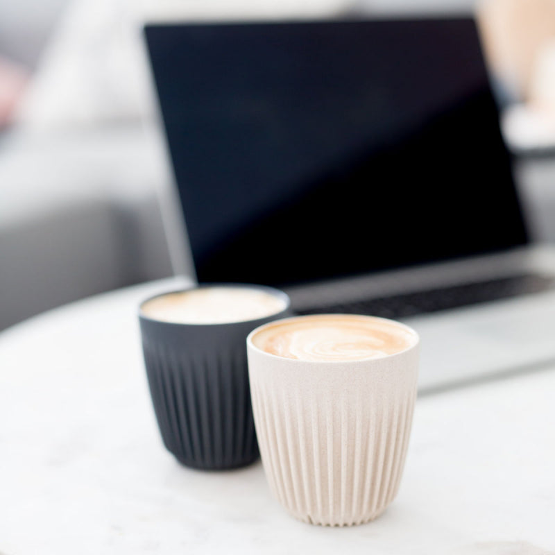 Each year, over 500 billion takeaway cups pile up in landfill. Help turn the tide by choosing Huskee, the award-winning, sustainable, reusable cup. Good for the environment. Good for the user. GOOD FOR THE ENVIRONMENT Huskee cups are constructed sustainably with coffee husk as a raw material, meaning not only do users SAVE a disposable cup from landfill every time they use a Huskee Cup in their favourite café. They also RECYCLE part of the 1.7 million tonnes of coffee husk waste produced each year globally during coffee production. GOOD FOR THE USER Huskee's environmental credentials do not come at the expense of a quality, user-friendly product. Deserving winners of the Good Design Award in 2018, the Huskee Cup is a stylish, unique-look cup that keeps coffee hotter for longer without burning fingers. It's constructed from non-toxic, BPA-free material. It's comfortable to hold and is both easy to clean-being dishwasher safe and built with smart draining vents on the bottom to ensure water runs off after washing-and easy to store neatly due to being stackable. The included universal lid features a triangulation of vents on the roof. These increase the aromatics of the drinking experience while enabling the ideal pour rate. Each lid will fit any Huskee cup, regardless of size, and is made using recycled coffee husk, just like the cup.